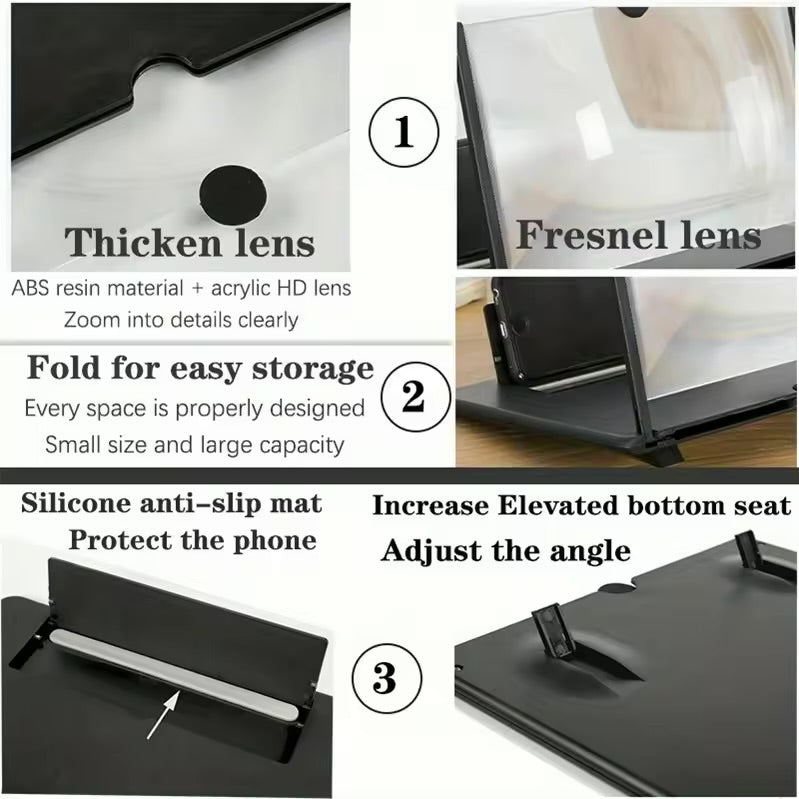 The Phone HD Screen Magnifier features a premium HD acrylic lens that zooms images in crisp, high-definition quality while helping reduce eye strain. By enlarging your phone screen and creating a more comfortable viewing distance, it minimizes squinting and visual fatigue. Lightweight, portable, and easy to use, it delivers clearer viewing and better eye protection anywhere you go.